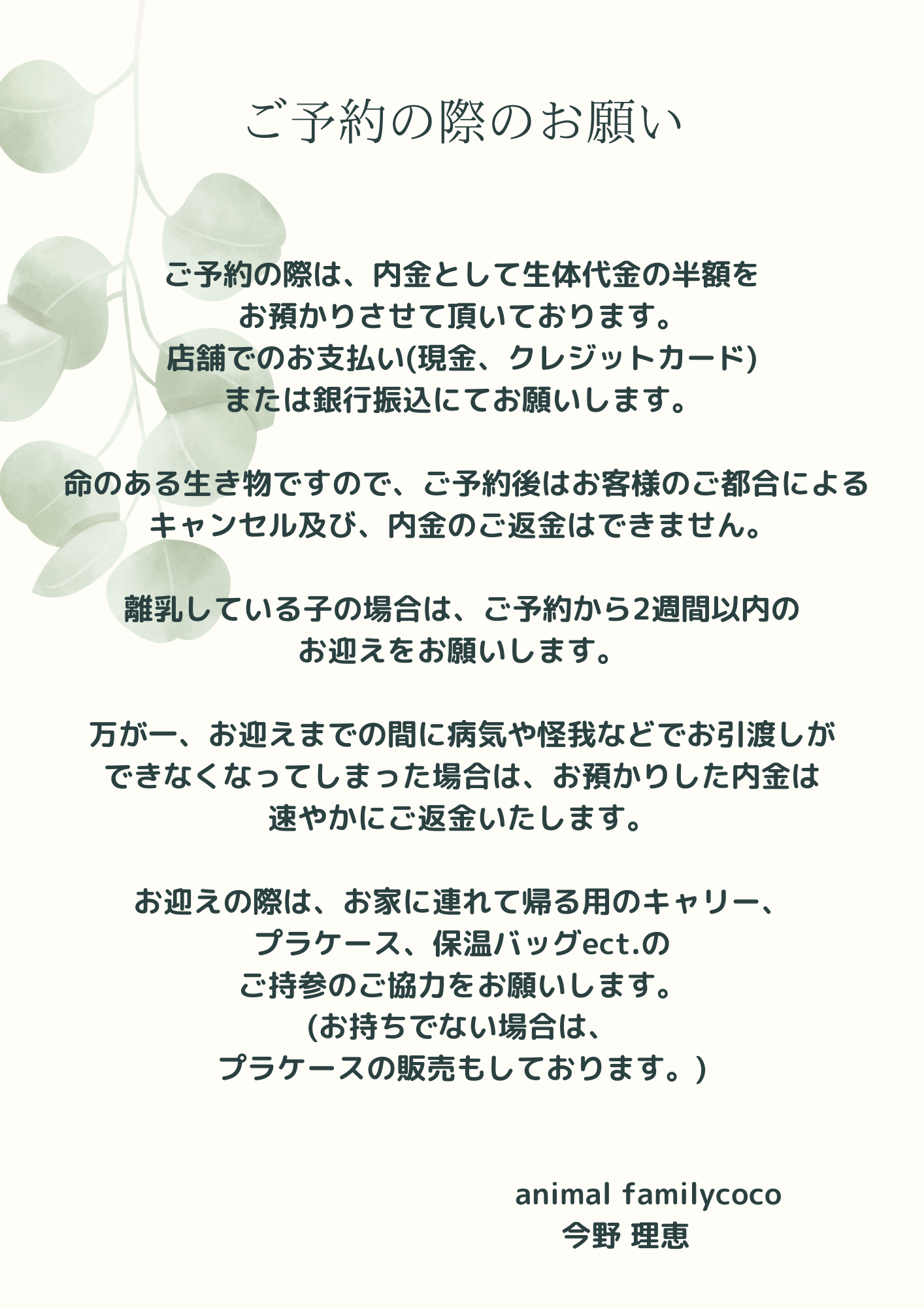 ご予約の際のお願いを写真ギャラリーに載せておりますのでご確認お願いいたします。